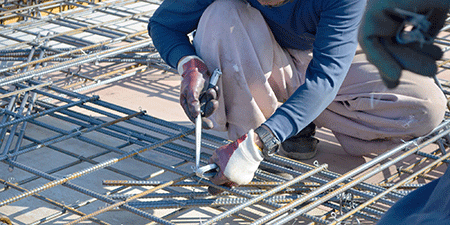 設計図から鉄筋の配置関係を把握し、現場に入ってきた資機材(鉄筋など)を設計図通りに組み立てる仕事です。 仕様書と図面を読める能力、配筋、段取りなどを経て、嵌合、結束でコンクリートを流し込む直前の骨組みを組むまでが仕事です。